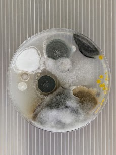 10月17日に設置した寒天培地を培養した結果、複数種のカビコロニーを確認しました。