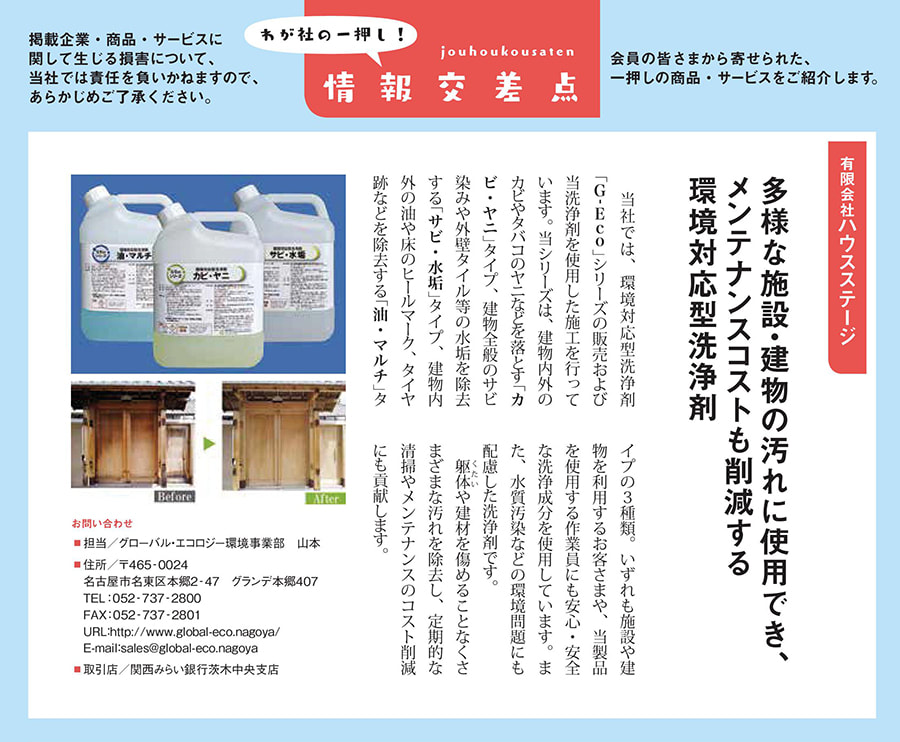 #りそなーれ #2019年11月号 #ハウスステージ #グローバルエコロジー #洗浄剤 #カビ取り剤 #産業用洗浄剤 #業務用 #カビ #油汚れ #環境対応 #安心安全 #SDGs
